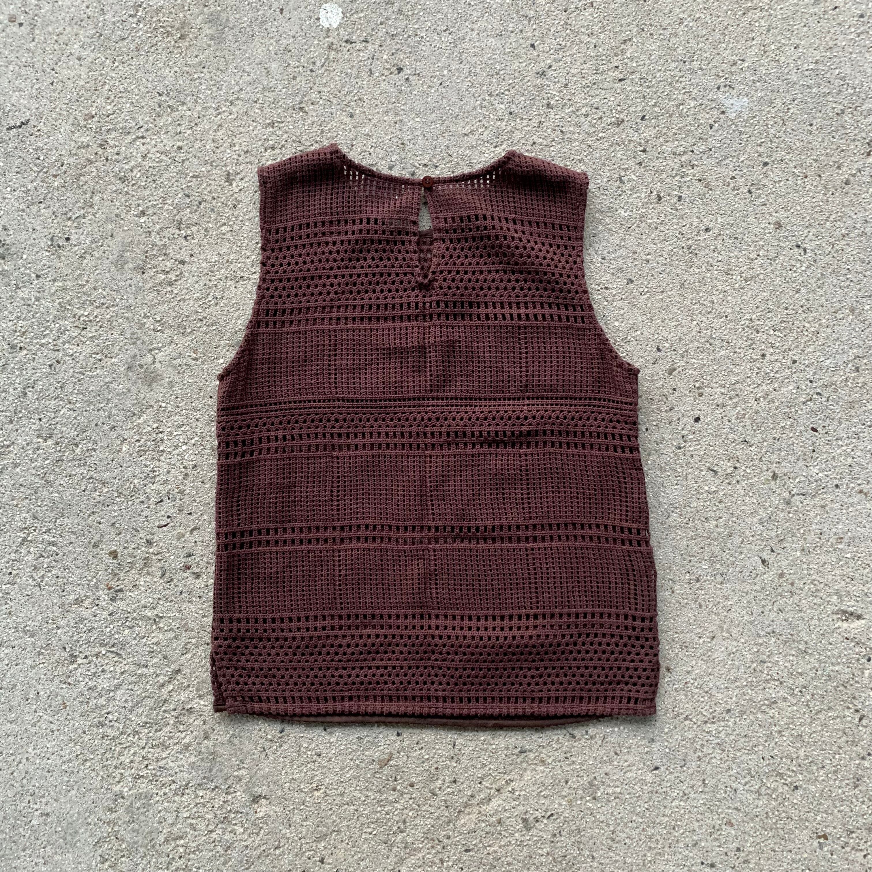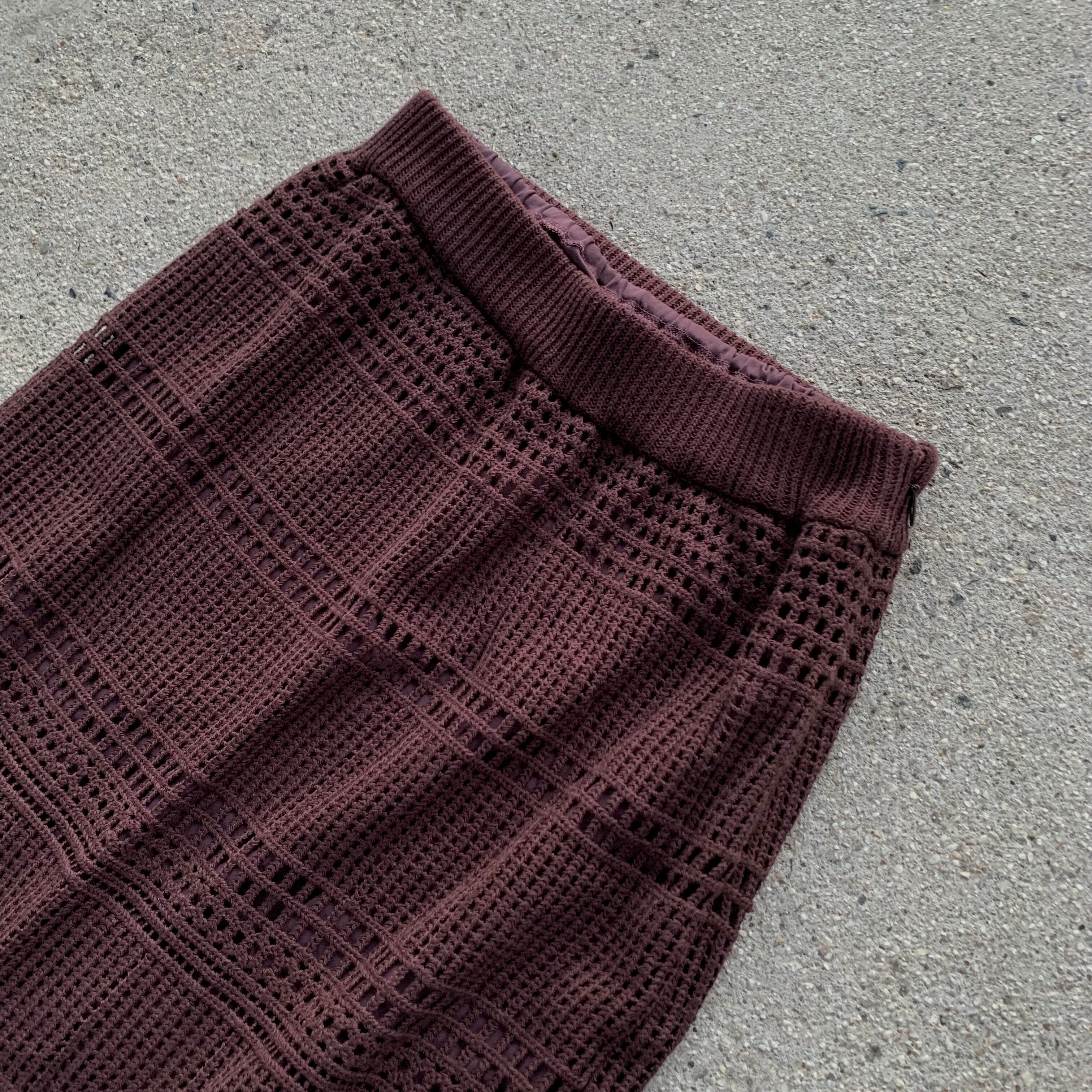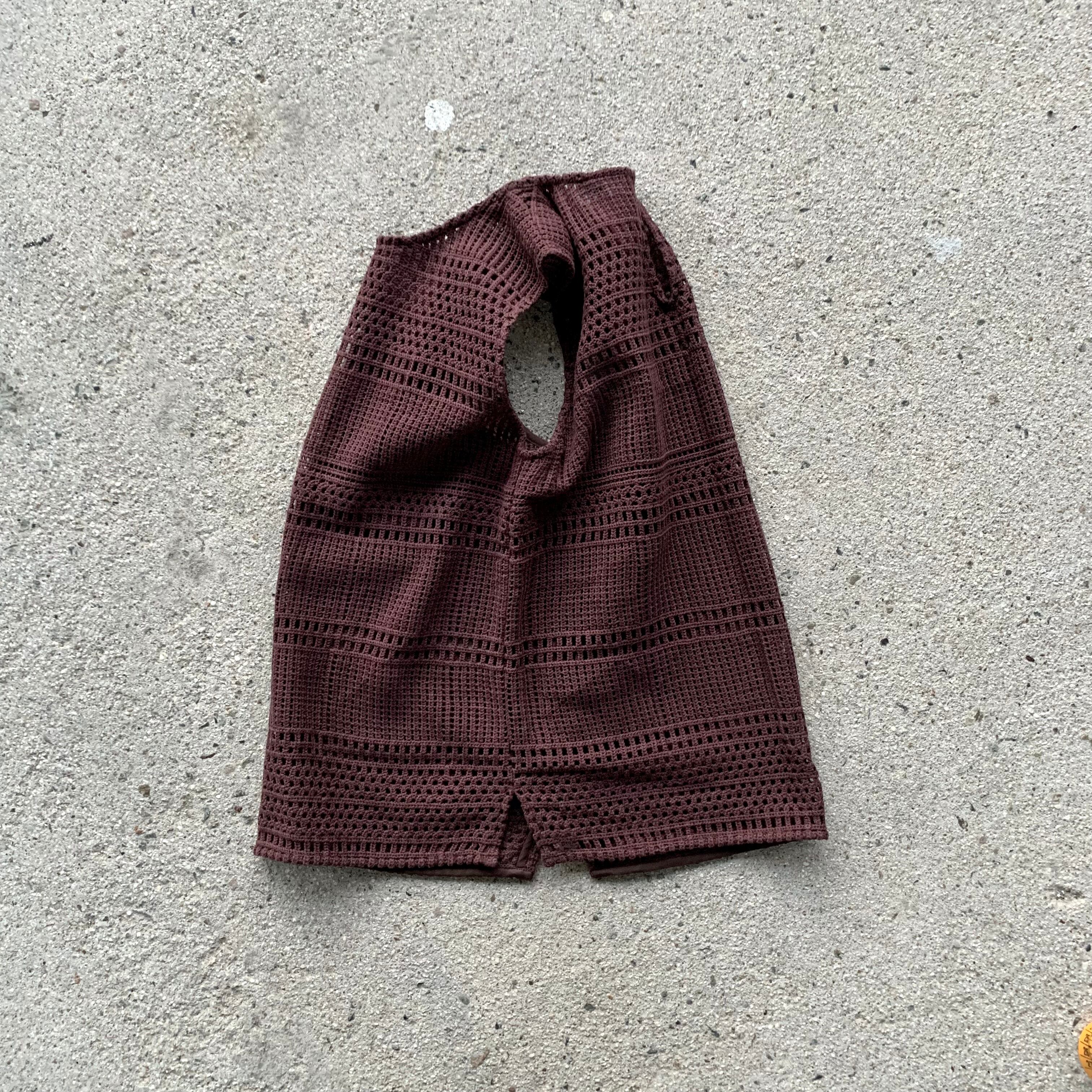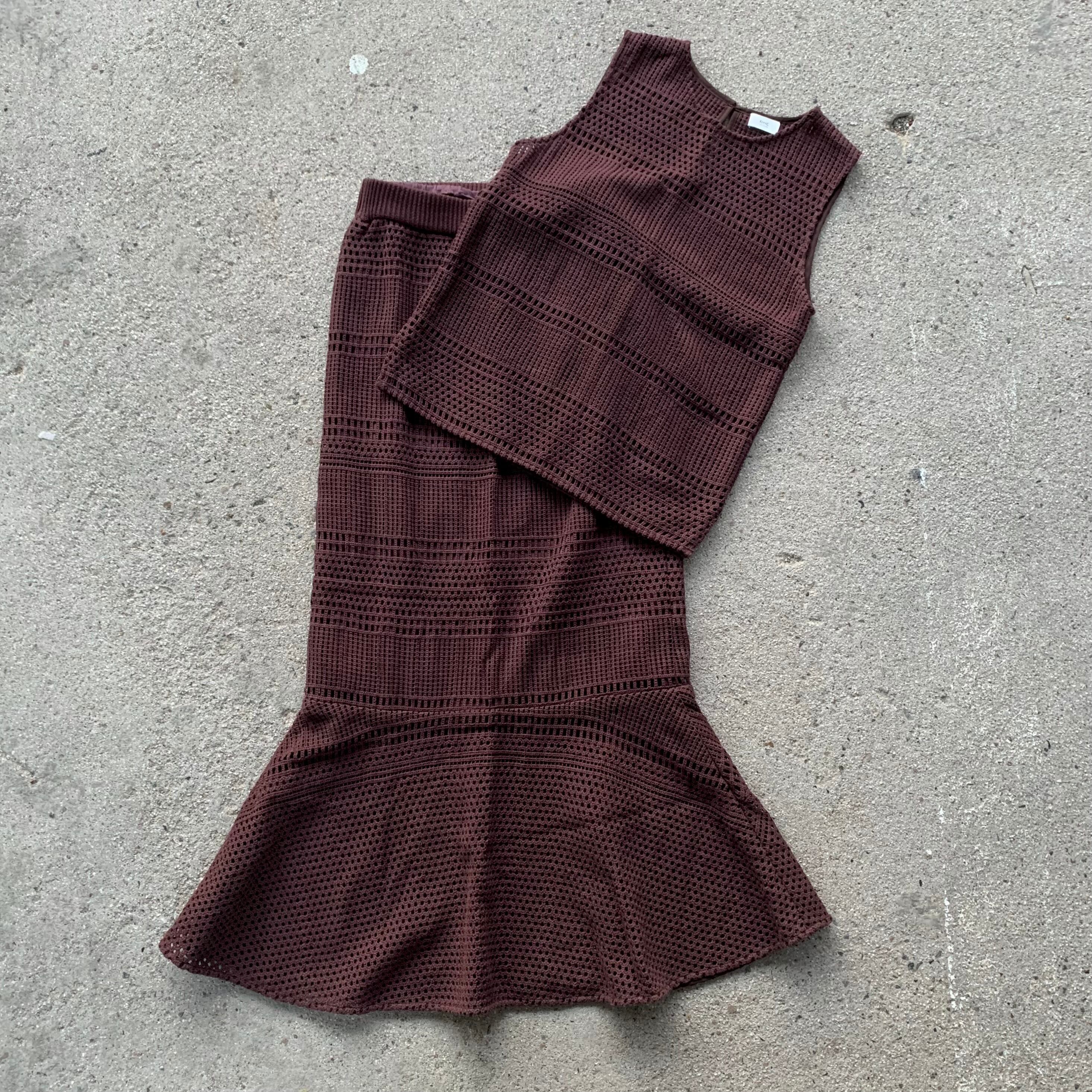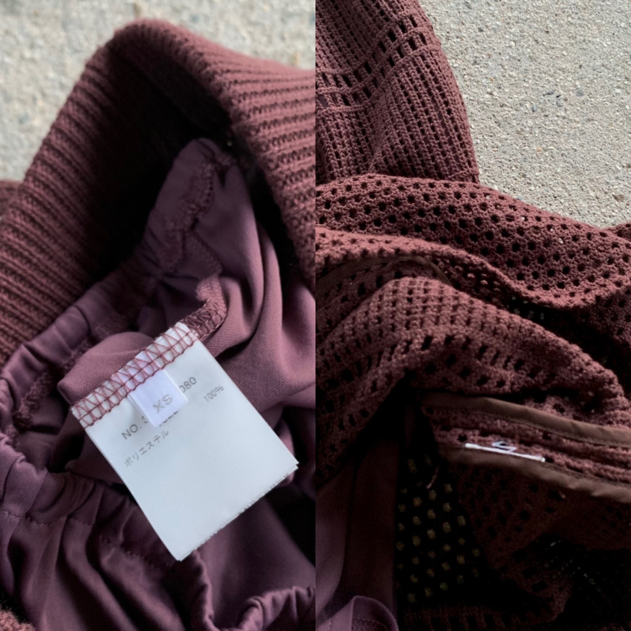 比較的目の詰まったカギ編みニットになり、秋や春先など過ごしやすい季節にほとんど対応できるニットセットアップアイテム。