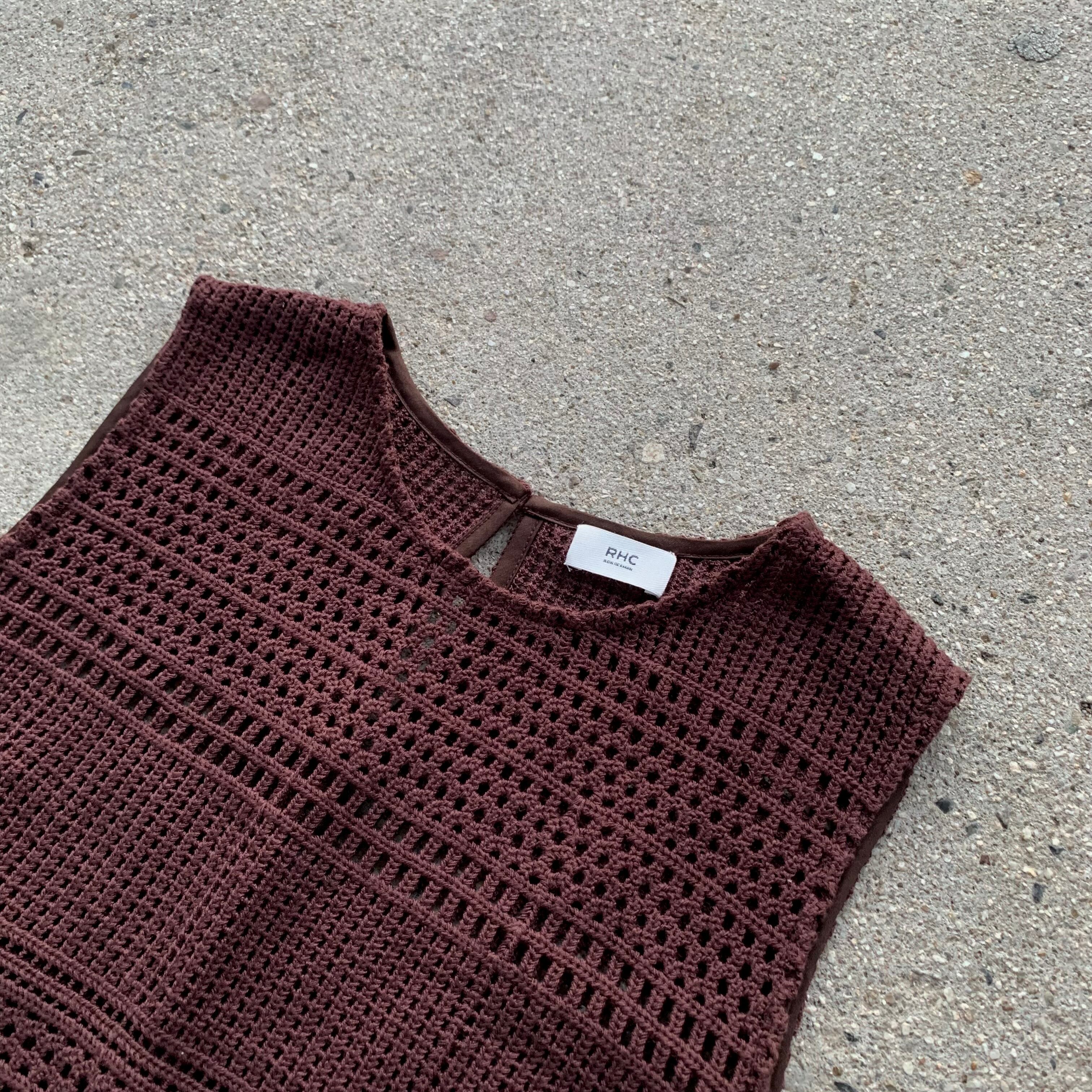 ダークブラウンの深い色味が良く、セット着用から別使いも可能なコットンニットアイテムになります。