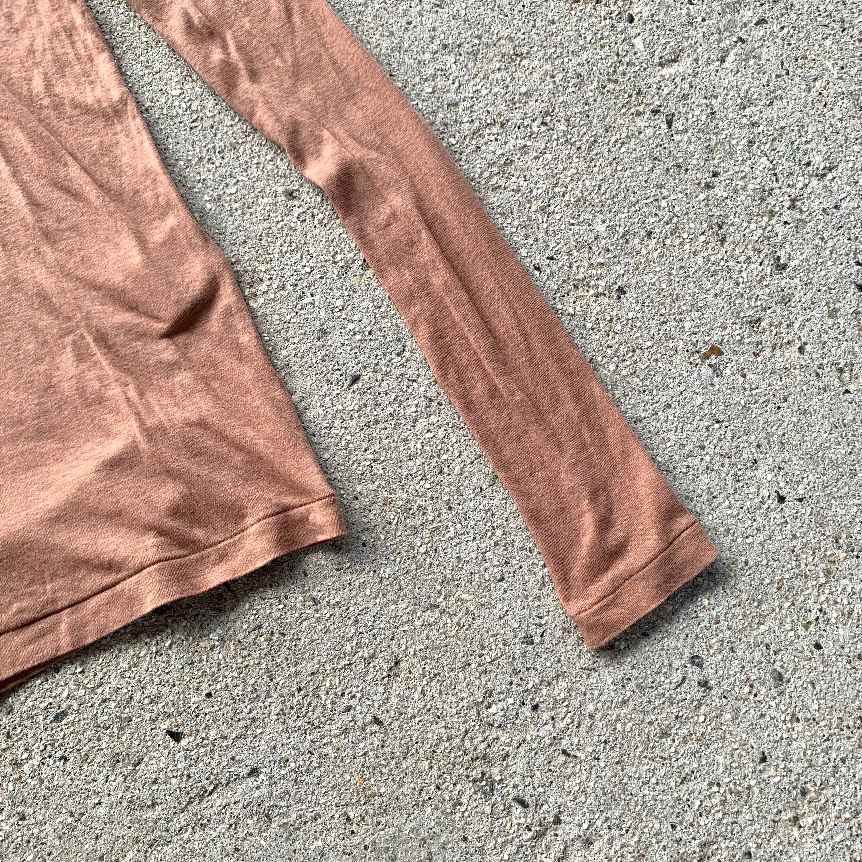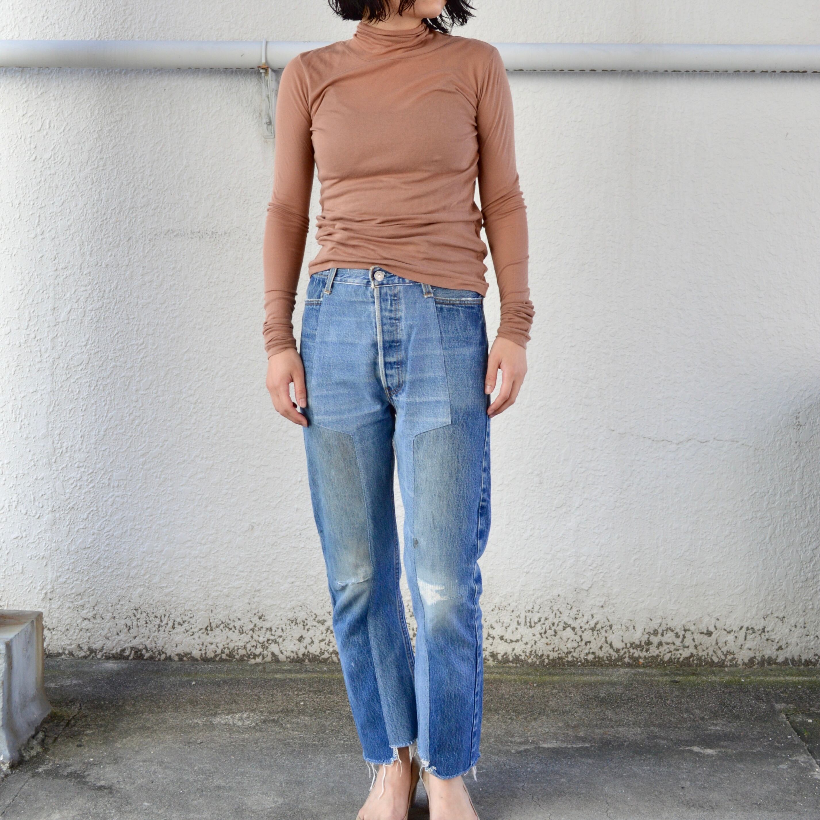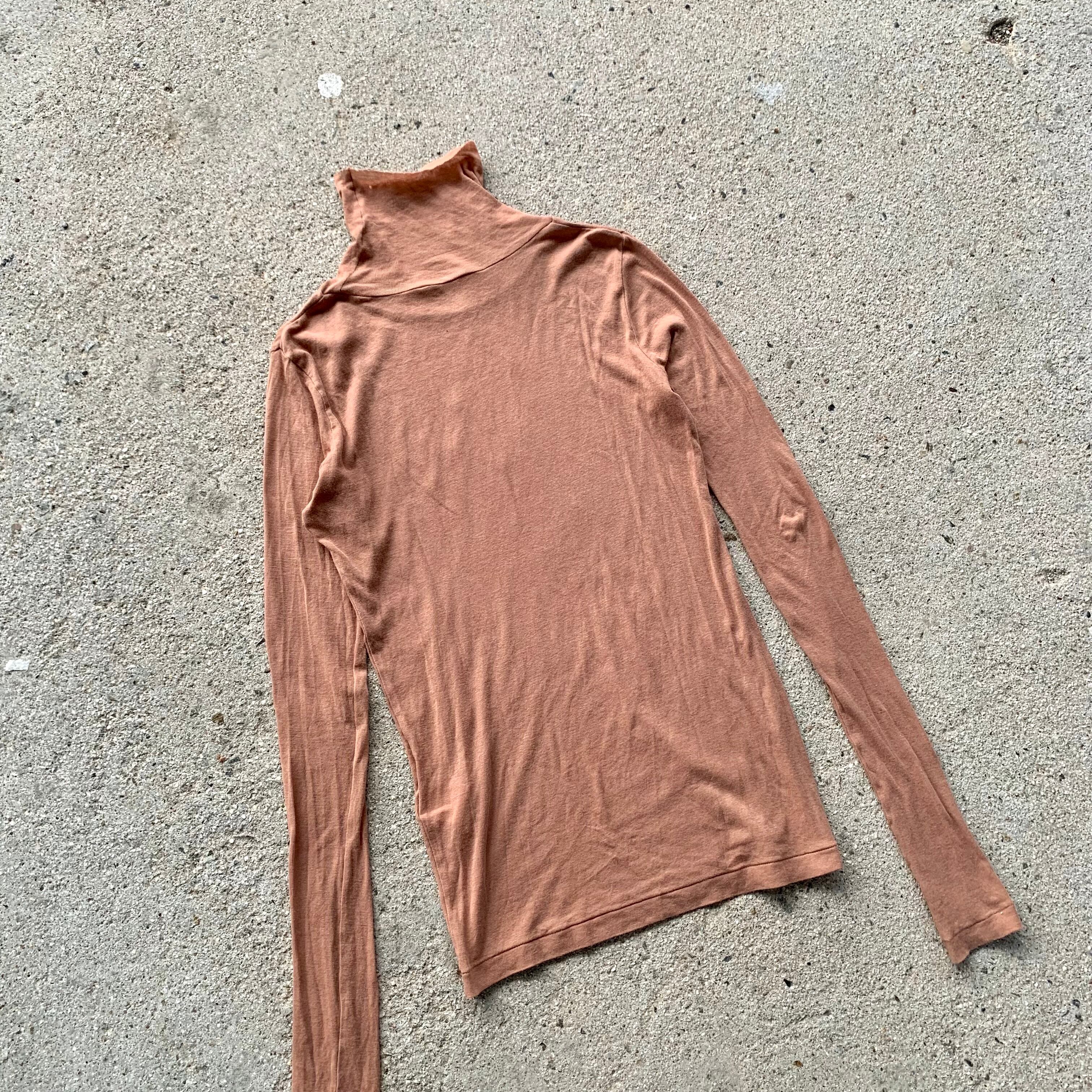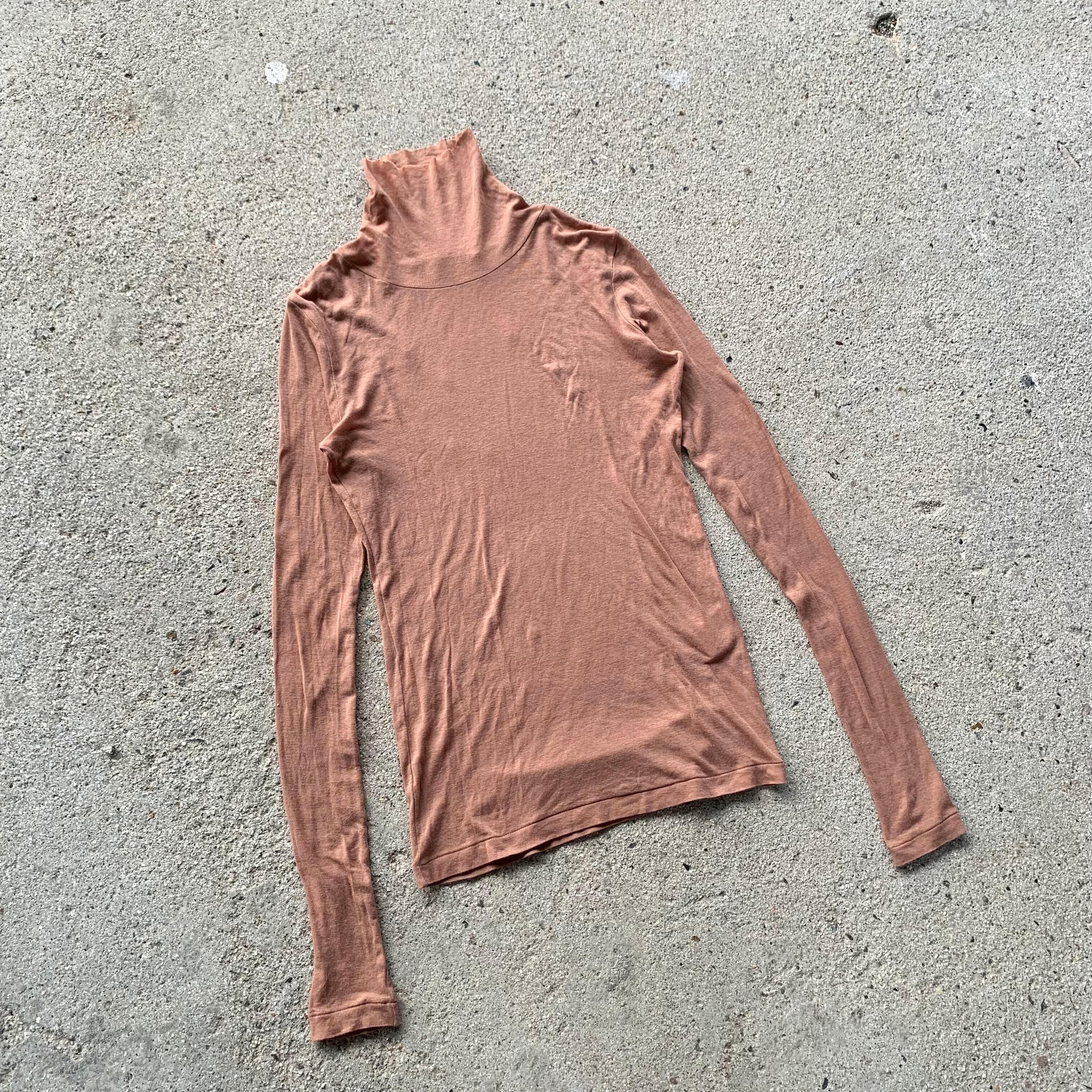 タートルネックは切りっぱなしのカットオフ仕様になり、裾口はビンテージアイテムにあるシングルステッチ縫製でつくられた身体のラインに沿うきれいなシルエットが特徴のハイネックです。