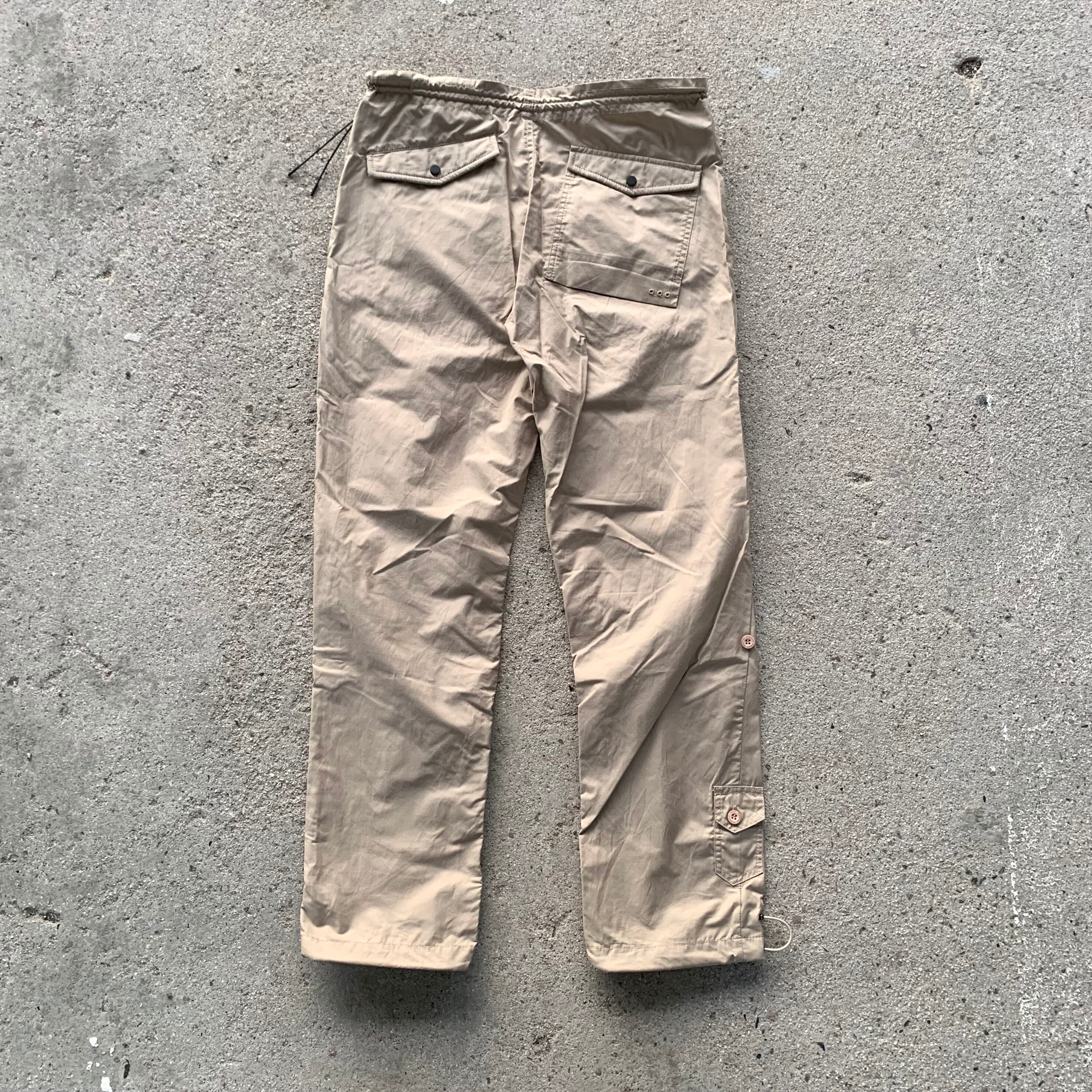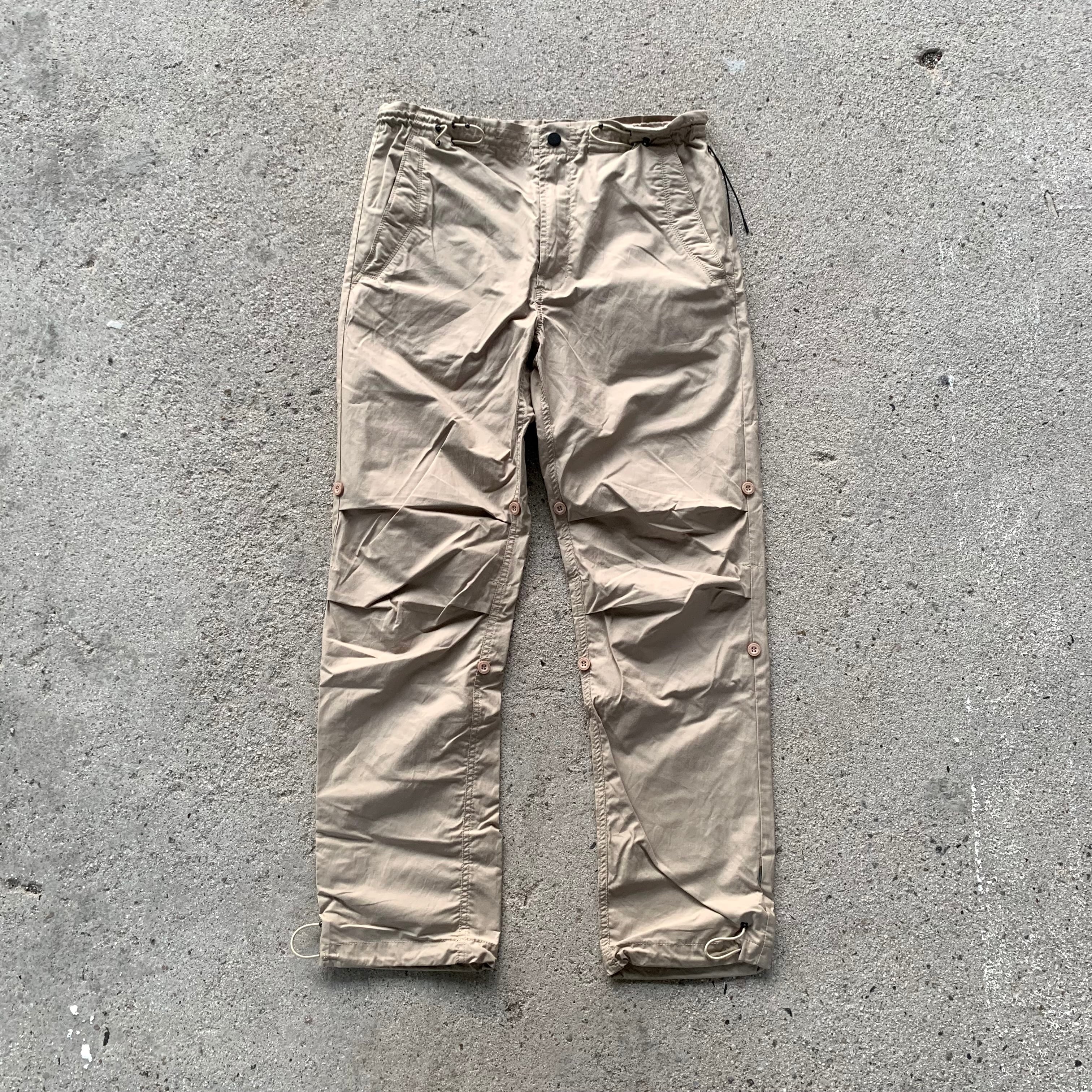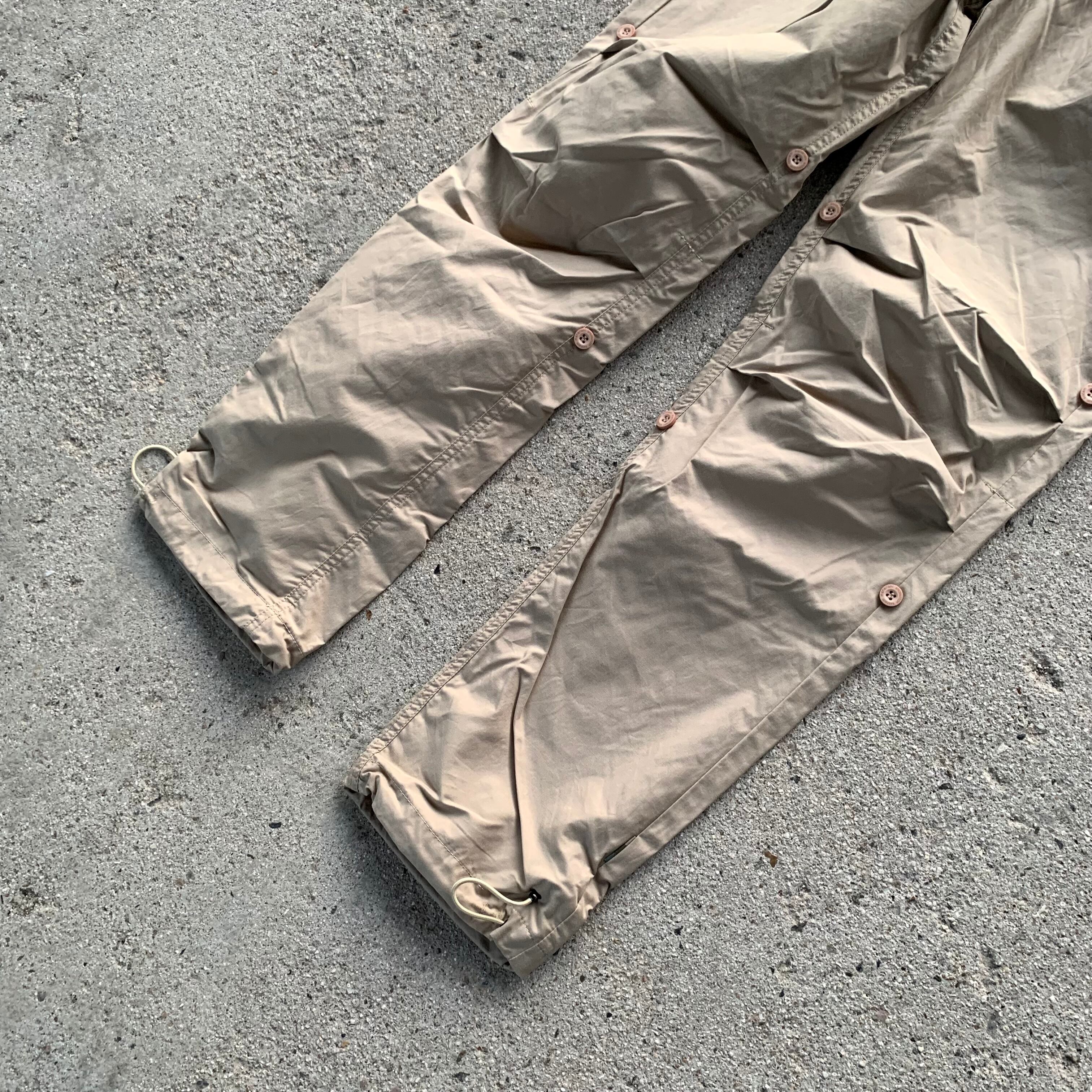 ミリタリーの雪原地用スノーパンツをデザインソースに、独自のシステムを取り入れた高機能モデルです。内側のストラップをレッグシームのボタンに固定する「Snobutton System」により、ショート丈、クロップド丈とレングスのアレンジを可能としています。