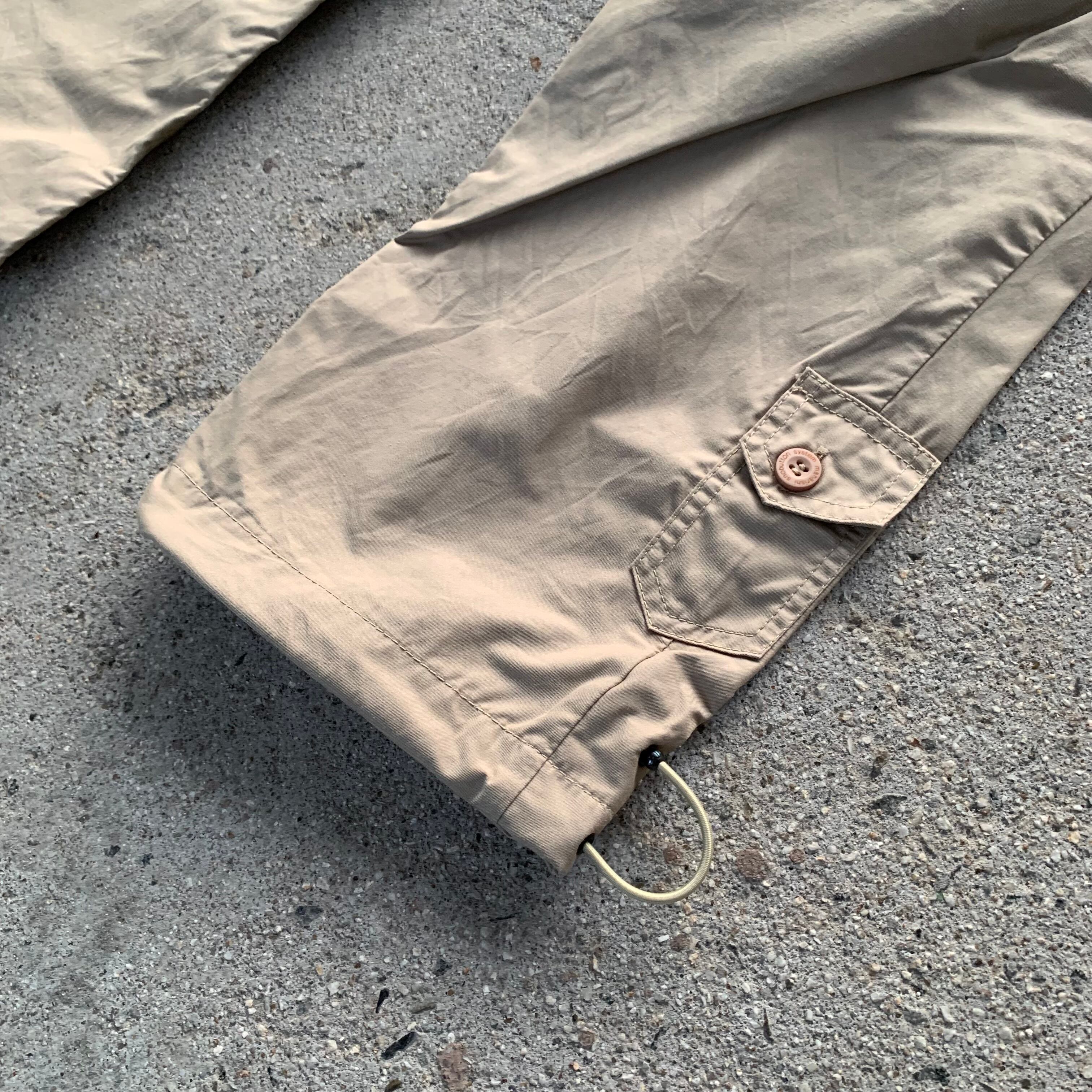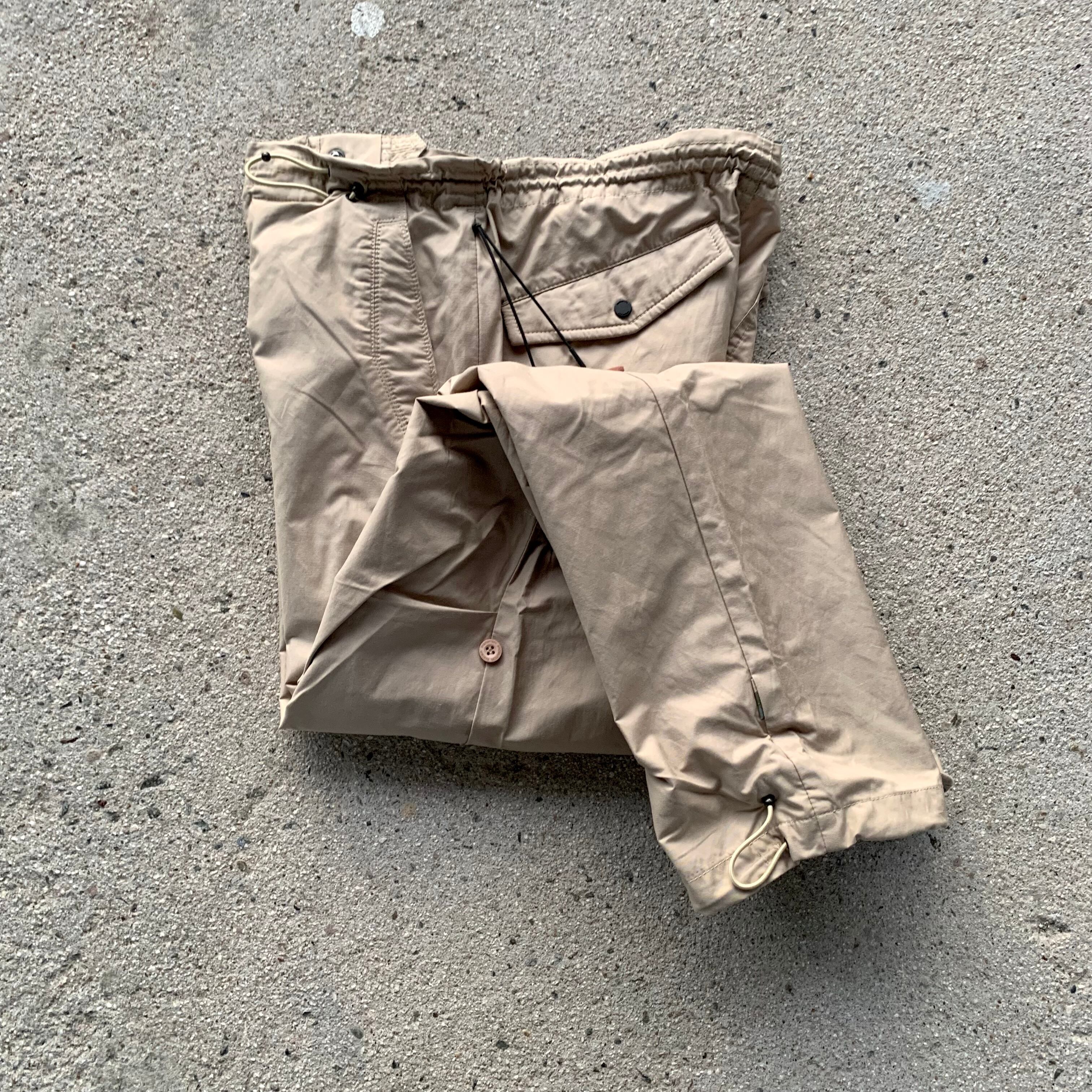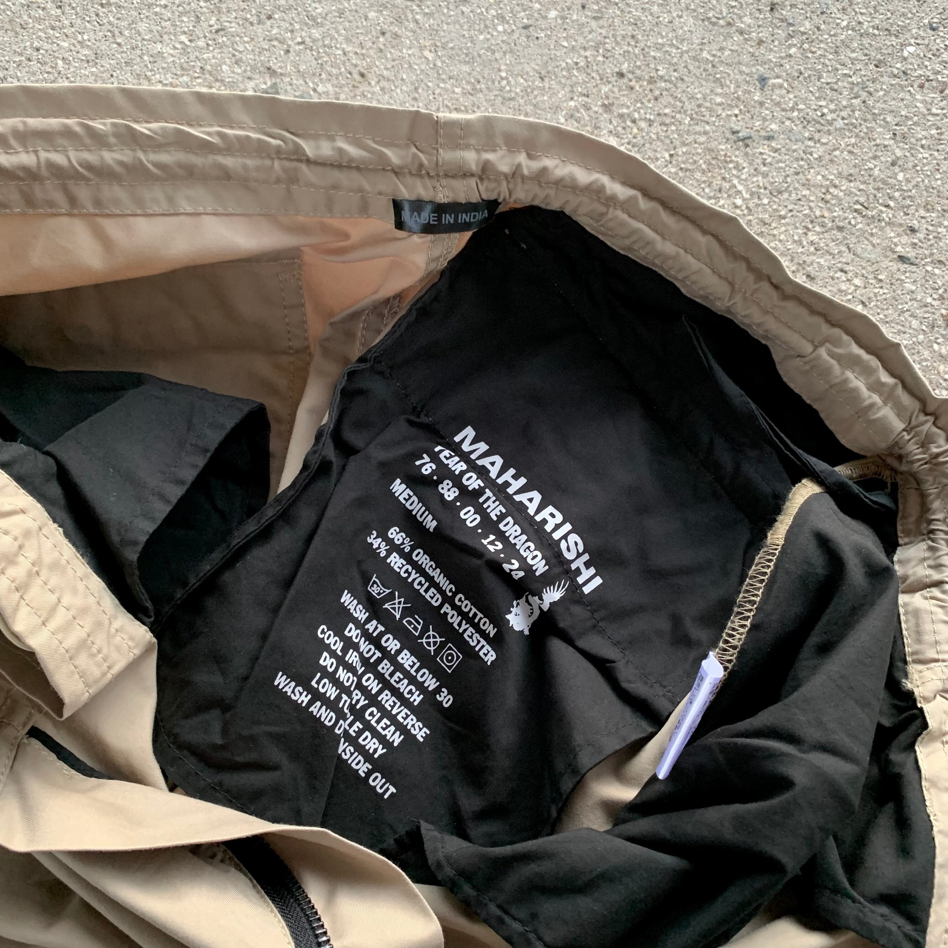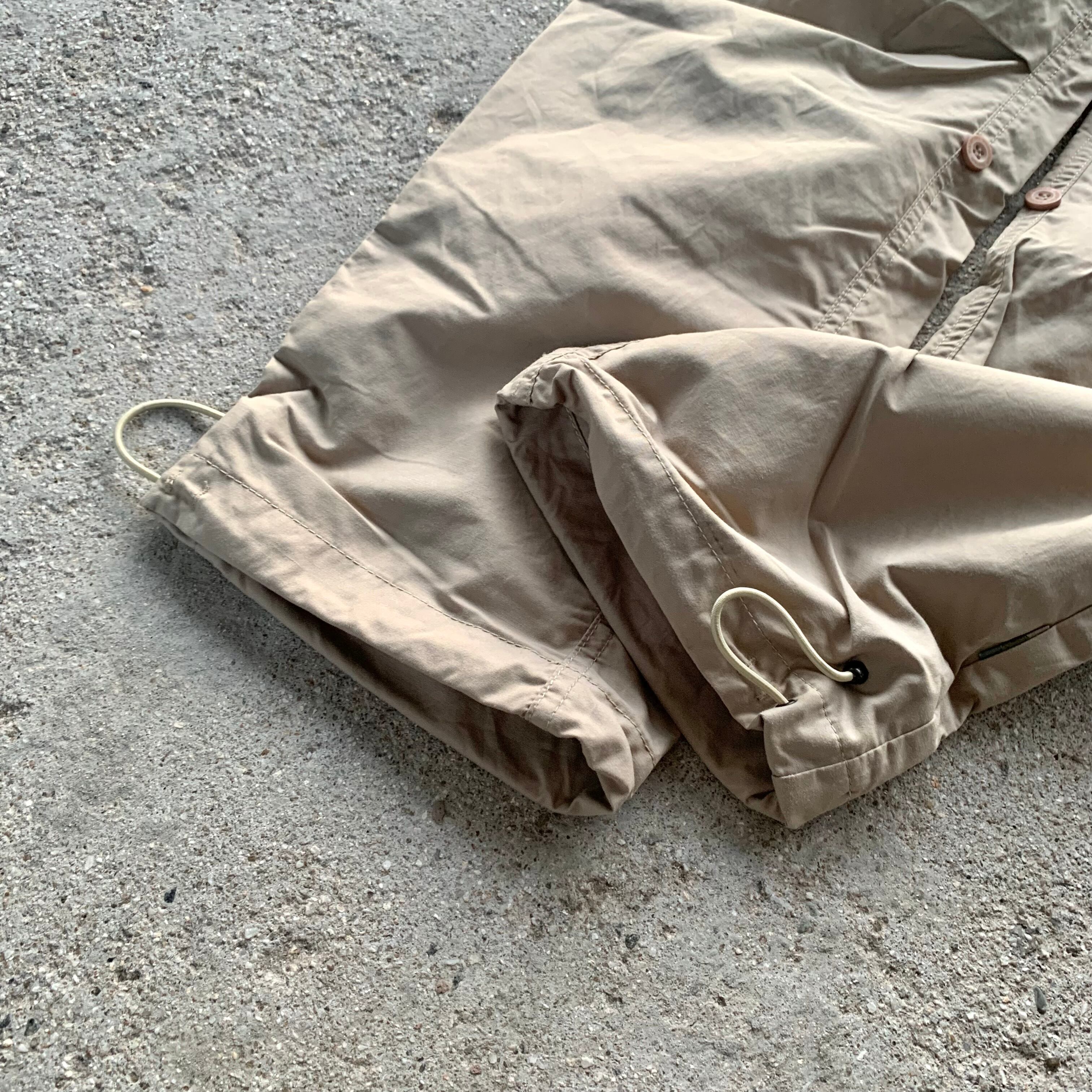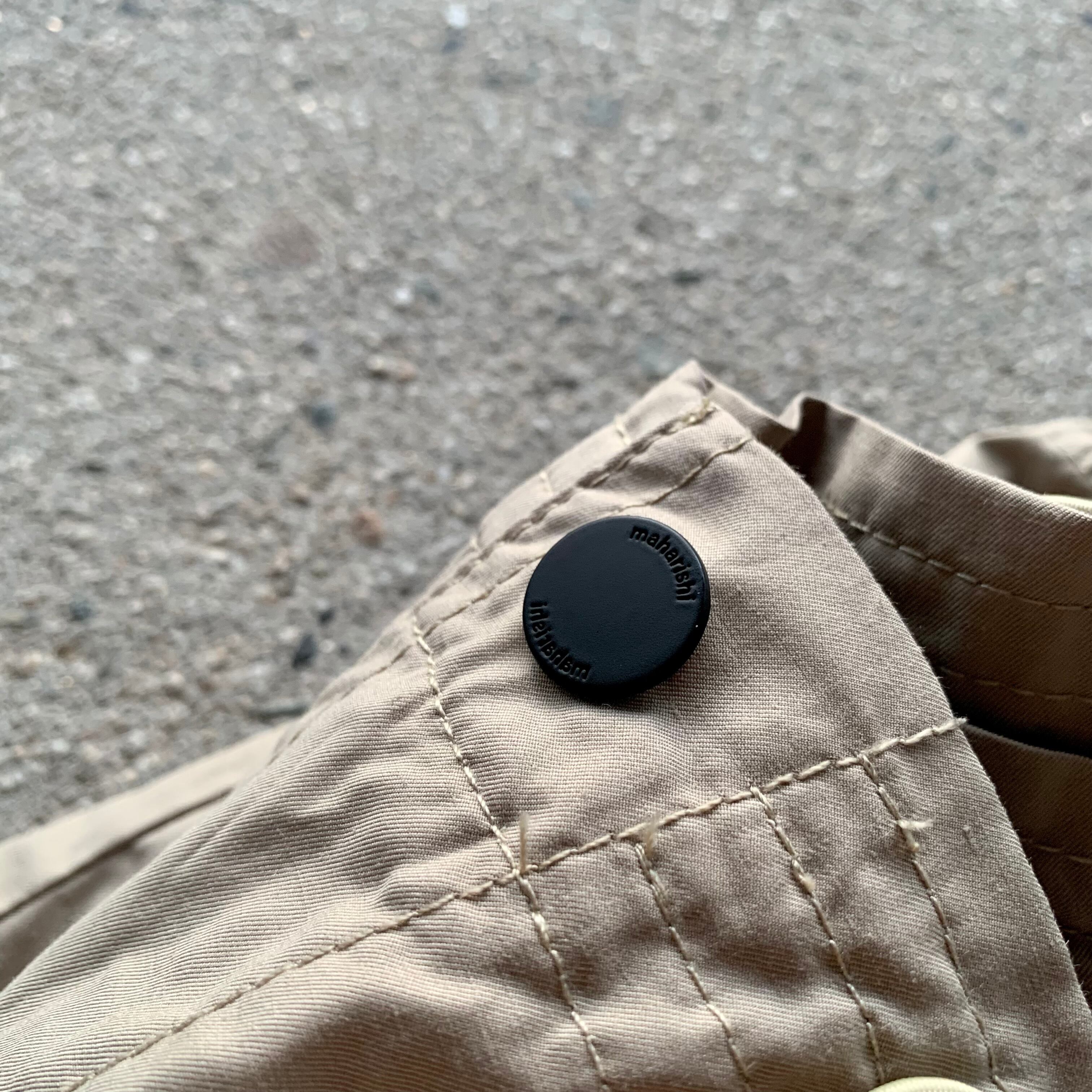 また、ウエストと裾部分にドローコードを配し、快適な着用感を実現。ドローコードのストッパーには、スイスのriri社がMAHARISHIのためだけに生産しているビーズを採用するなど、細かなディテールまで拘り抜かれたプロダクトとなっております。