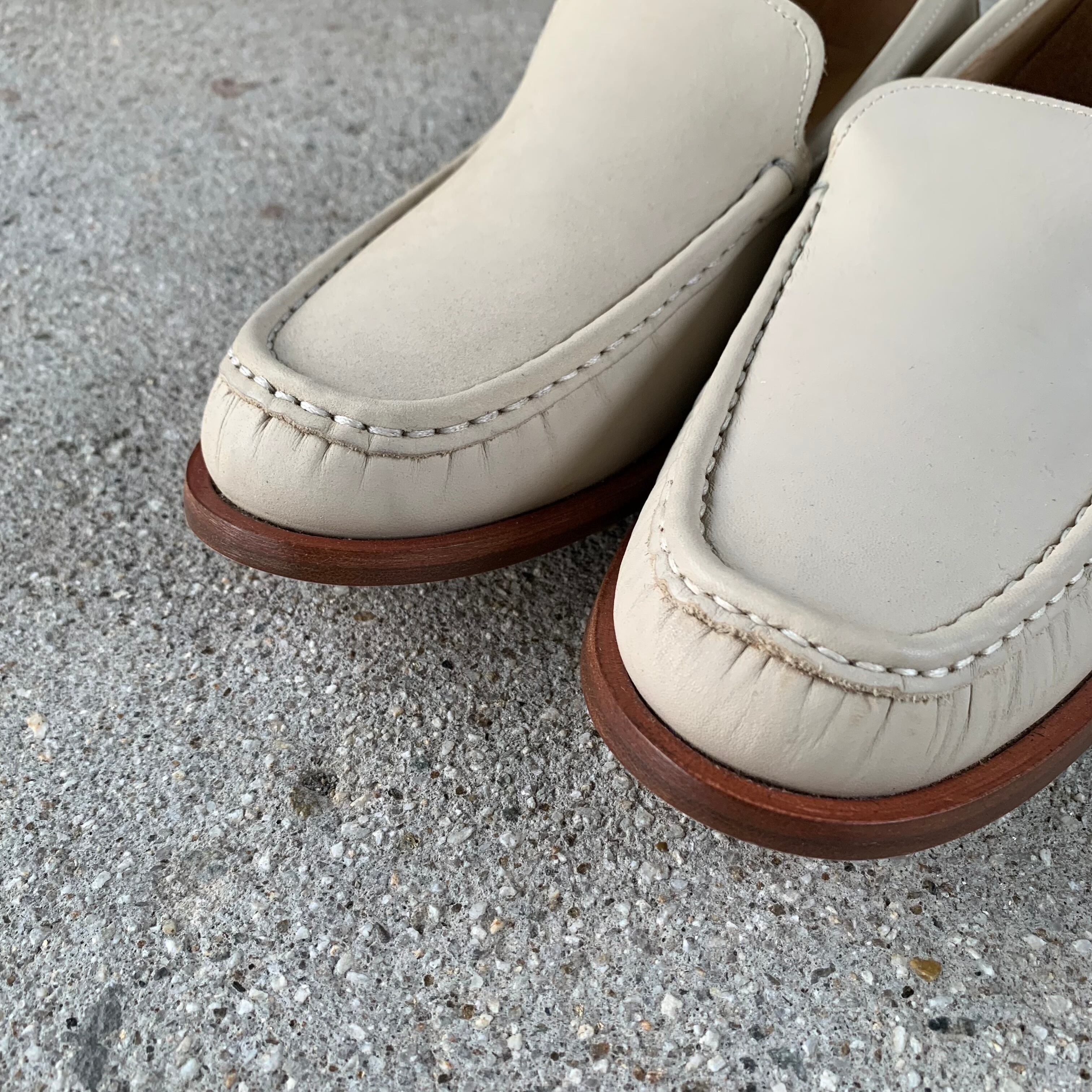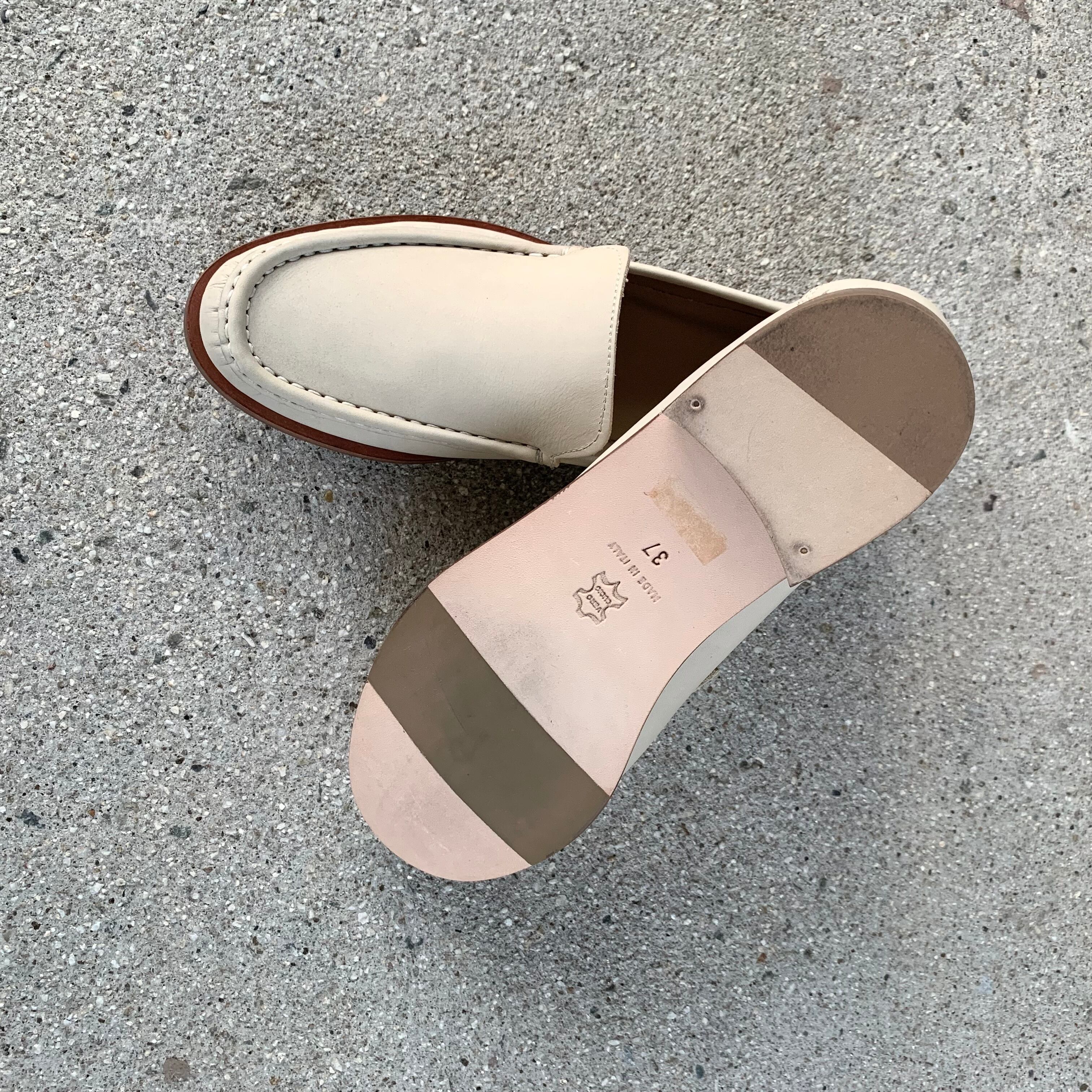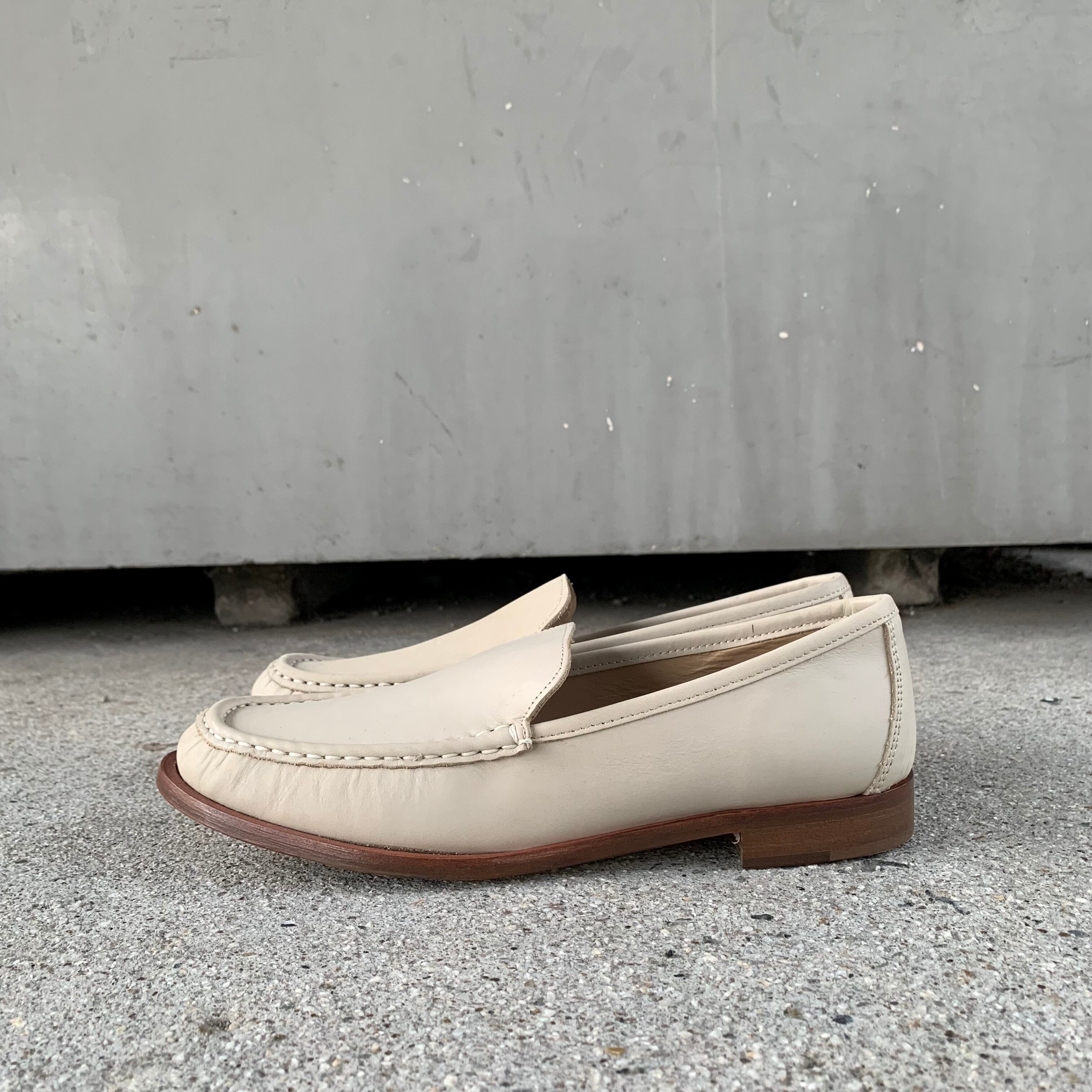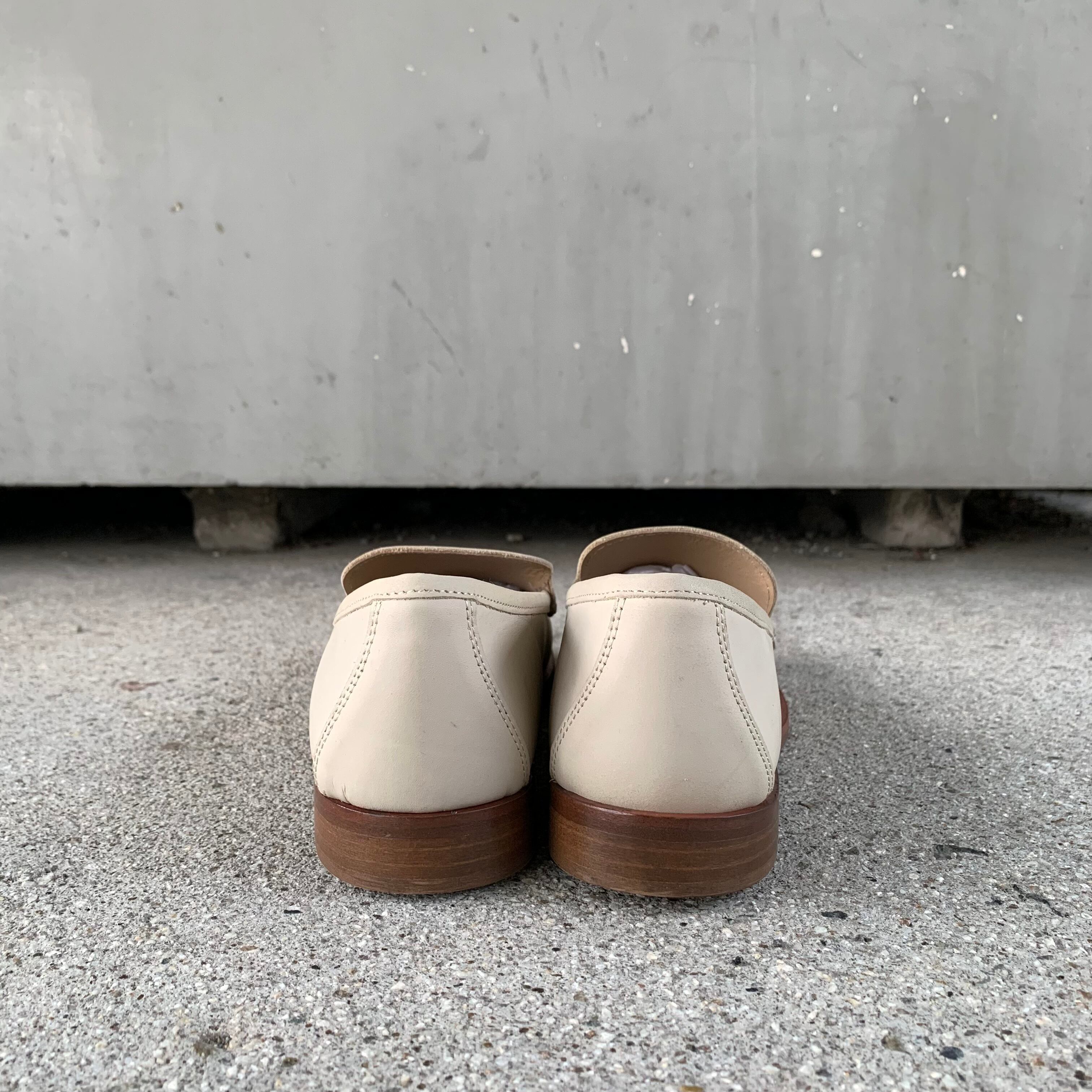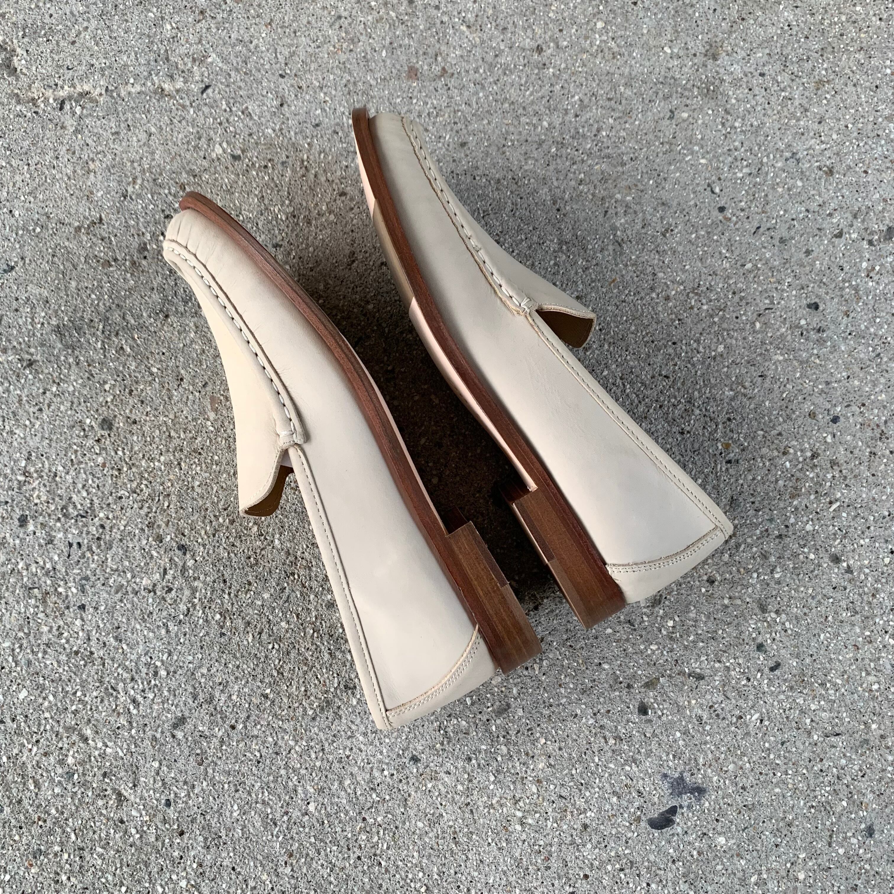 イタリア製のアイボリースムースレザーのみで仕上げられたシンプルなローファー。素材を活かしたシンプルなつくりが魅力です。