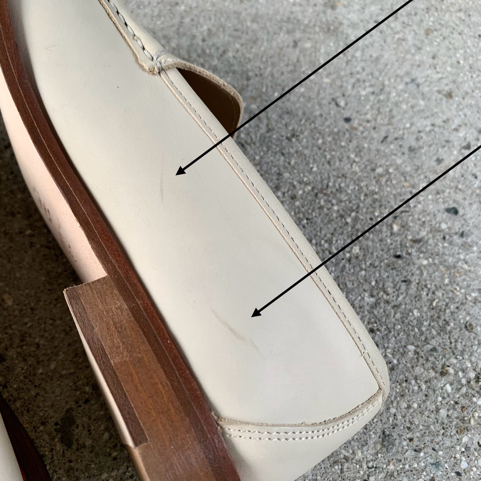 注意事項: よく見ないとわからない程度ですが、右足インサイドに薄スレ(写真最後尾)