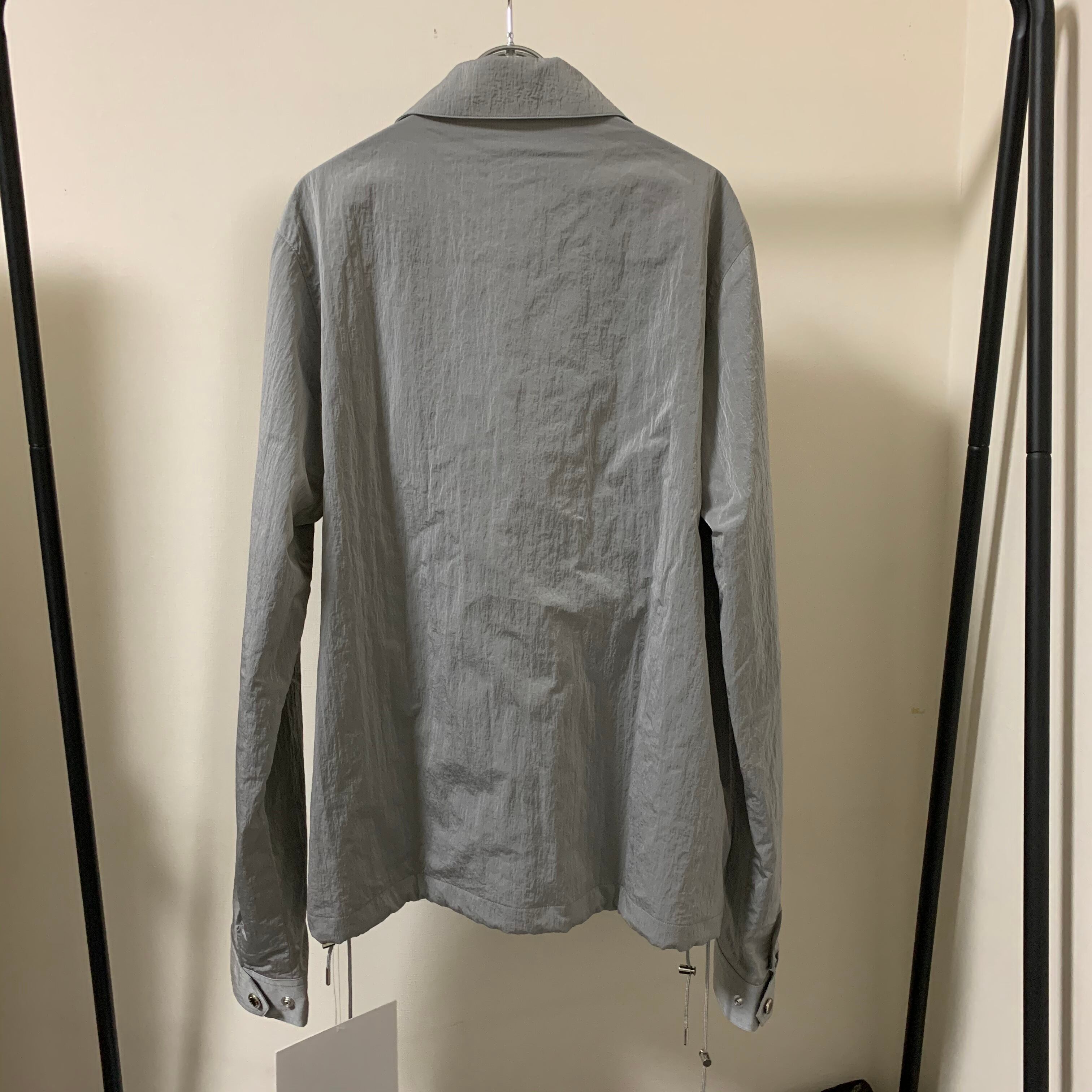 19ssコレクションのランウェイで使用されたナイロンアイテムシリーズのコーチジャケット。おうとつ感あるポリエステル素材は