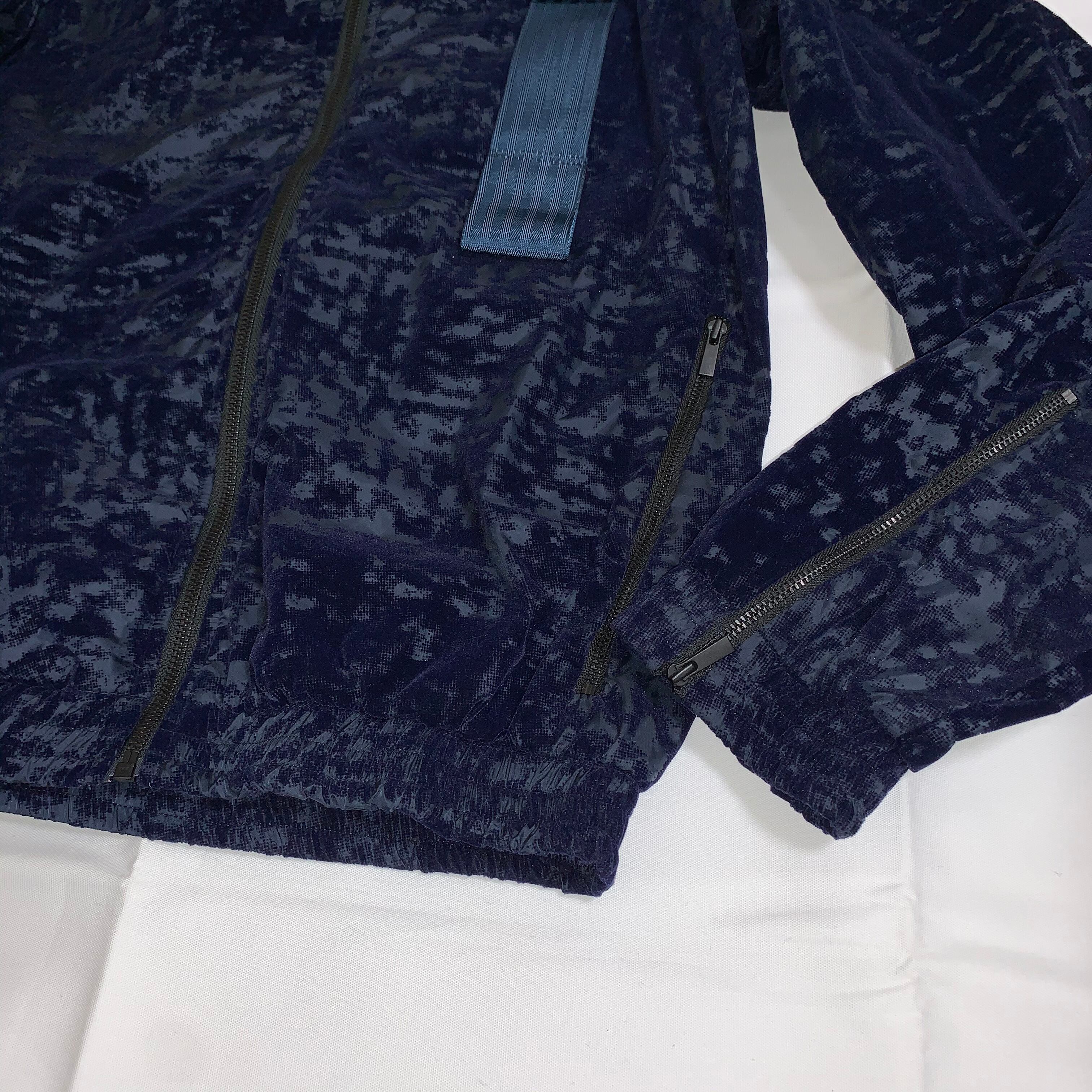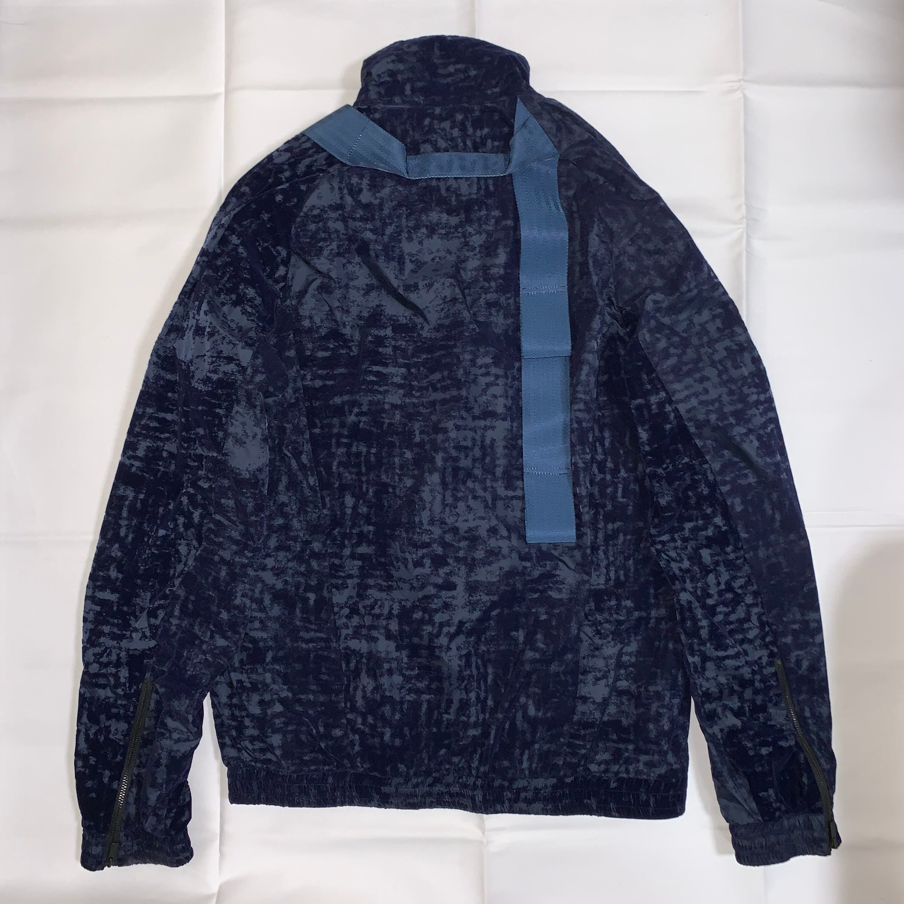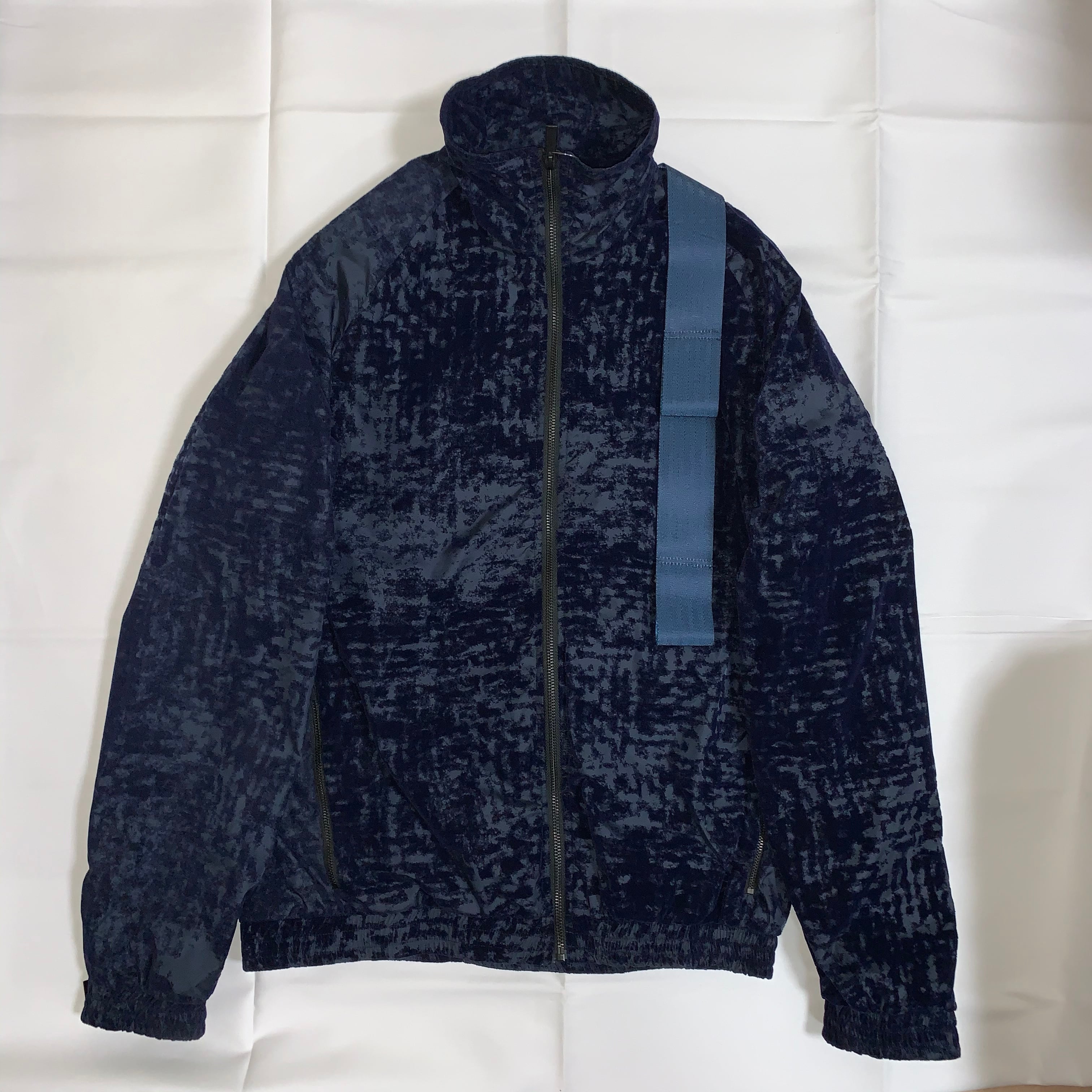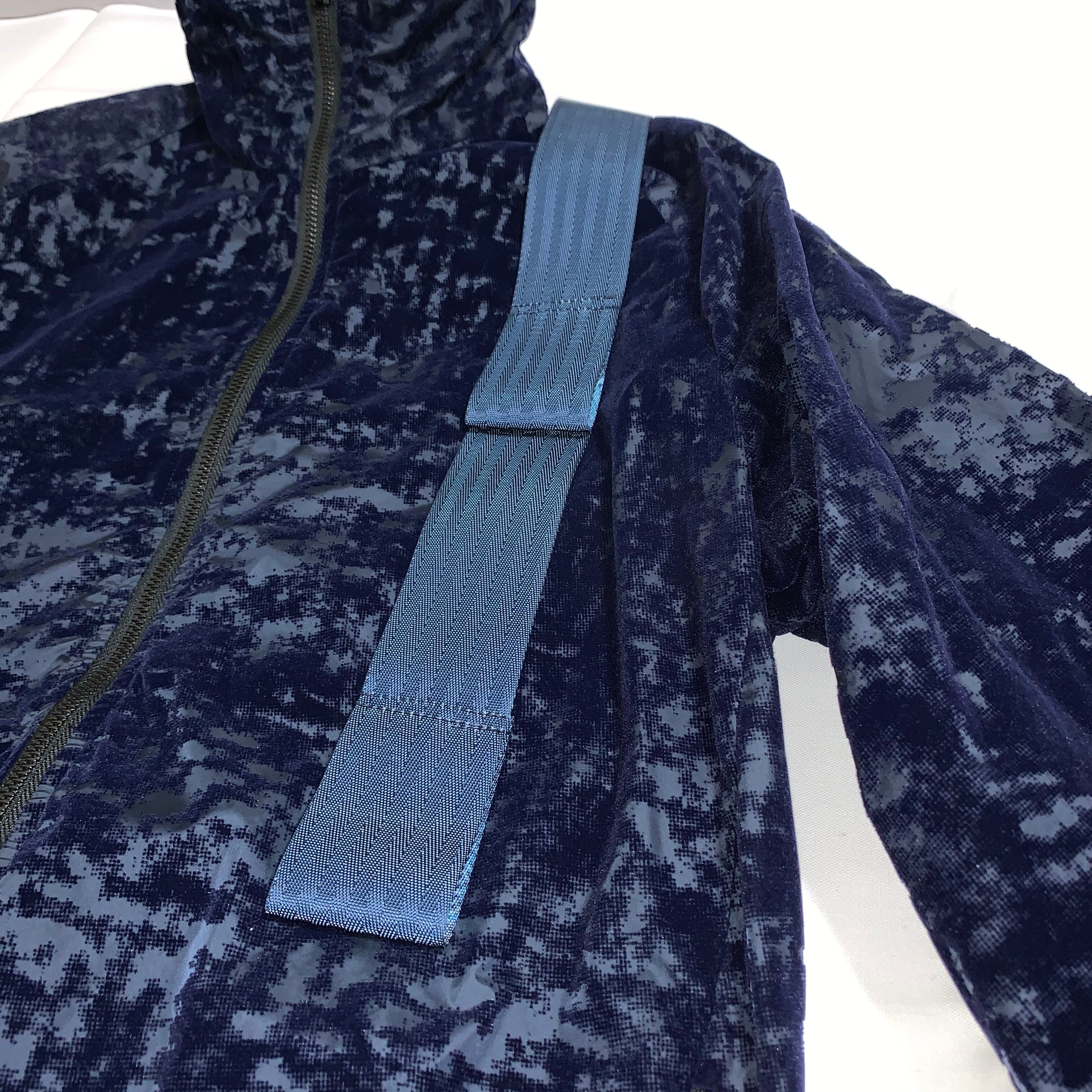 19ssベルベット総柄にコードテープデザインされたナイロンブルゾン。様々な生地やデザインを組み合わせた一着はエシカル要素が含まれたコットワイラーのアイコン。