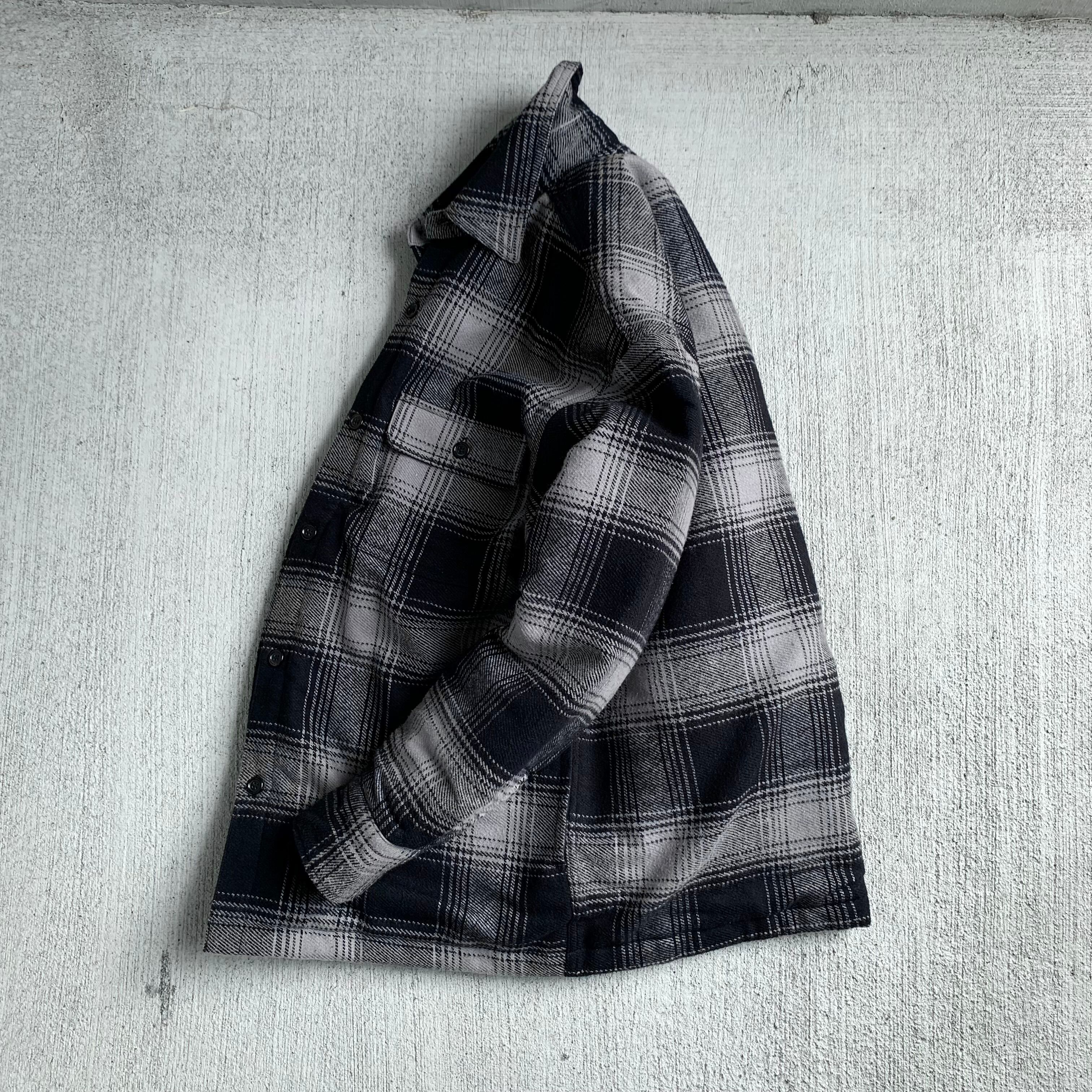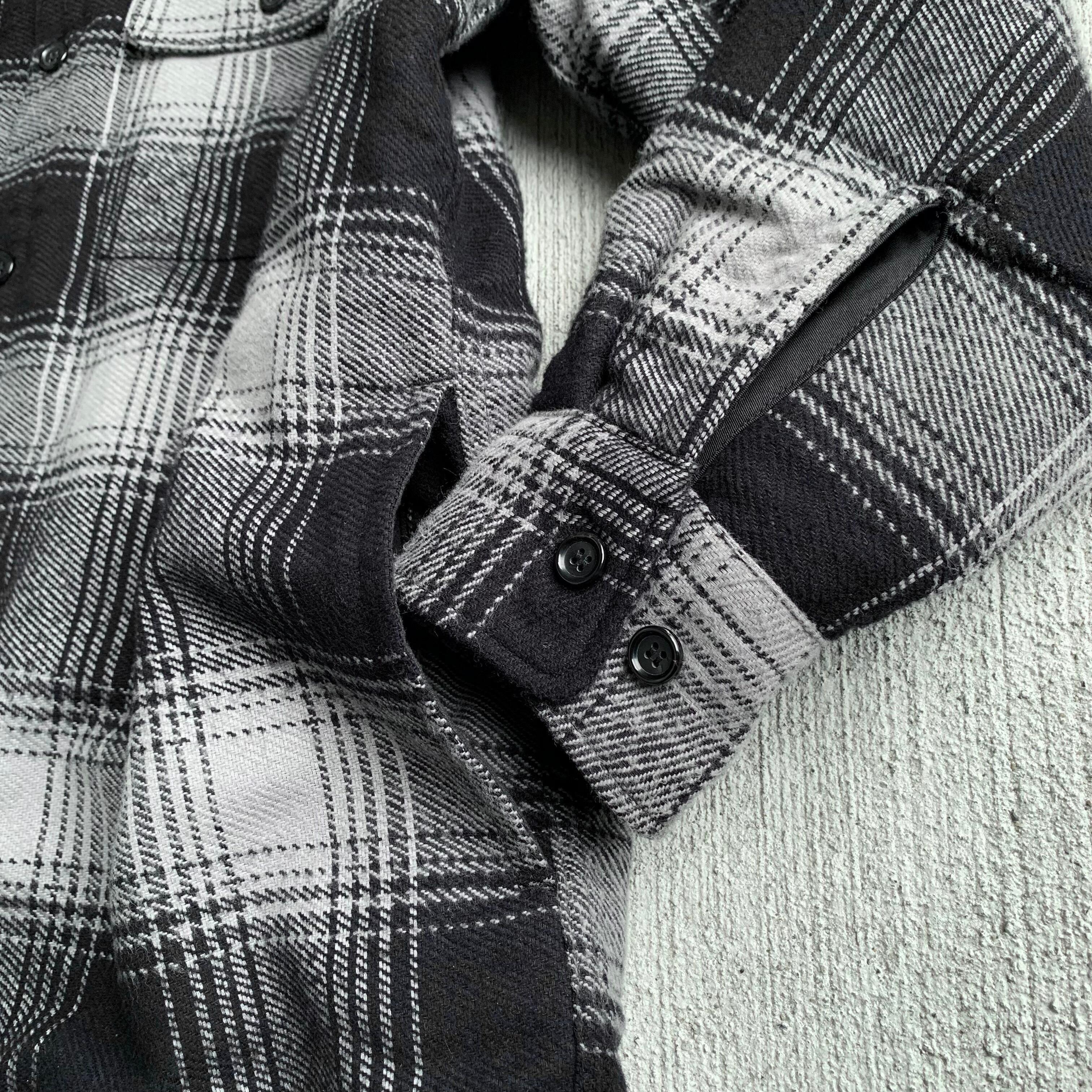 暖かく、柔らかな肌触りが魅力のフランネル生地を使用した、キルティングチェックシャツジャケット。