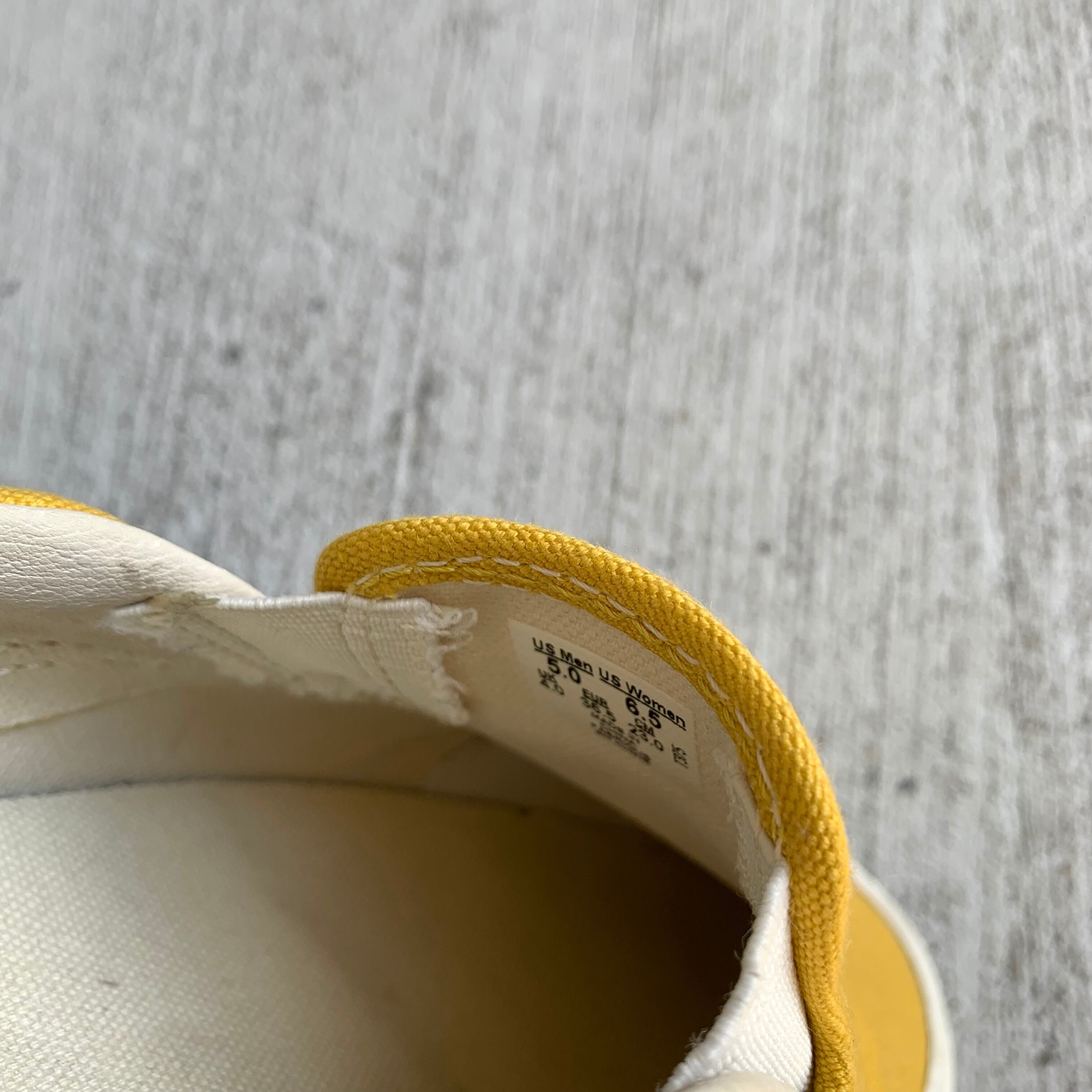廃盤となったUSラインで日本規格とは違い、クラシックな本来のUS規型を忠実に再現させたデザイン性と機能面も持ち合わせたハイエンドラインのVAULT。地面を沿うような型、インソールのクッション製、アッパーのつくりなど重厚感ある仕様となります。カラーは綺麗なマスタードイエローでシーズン問わず使えるカラーになります。